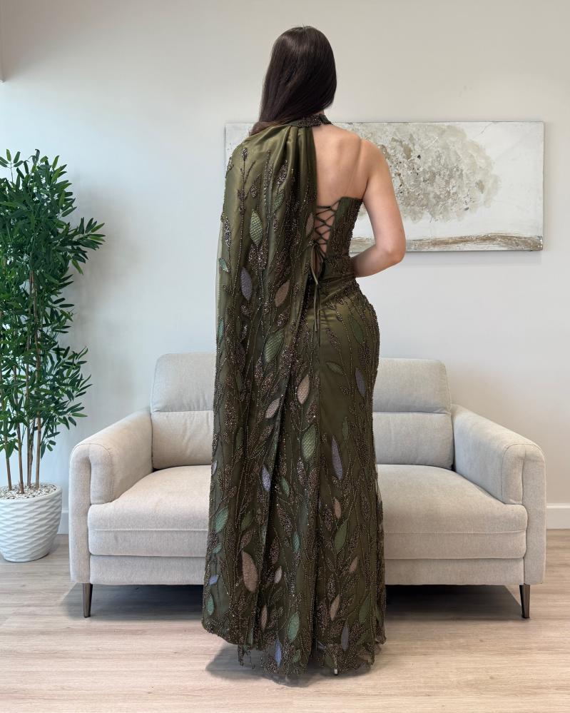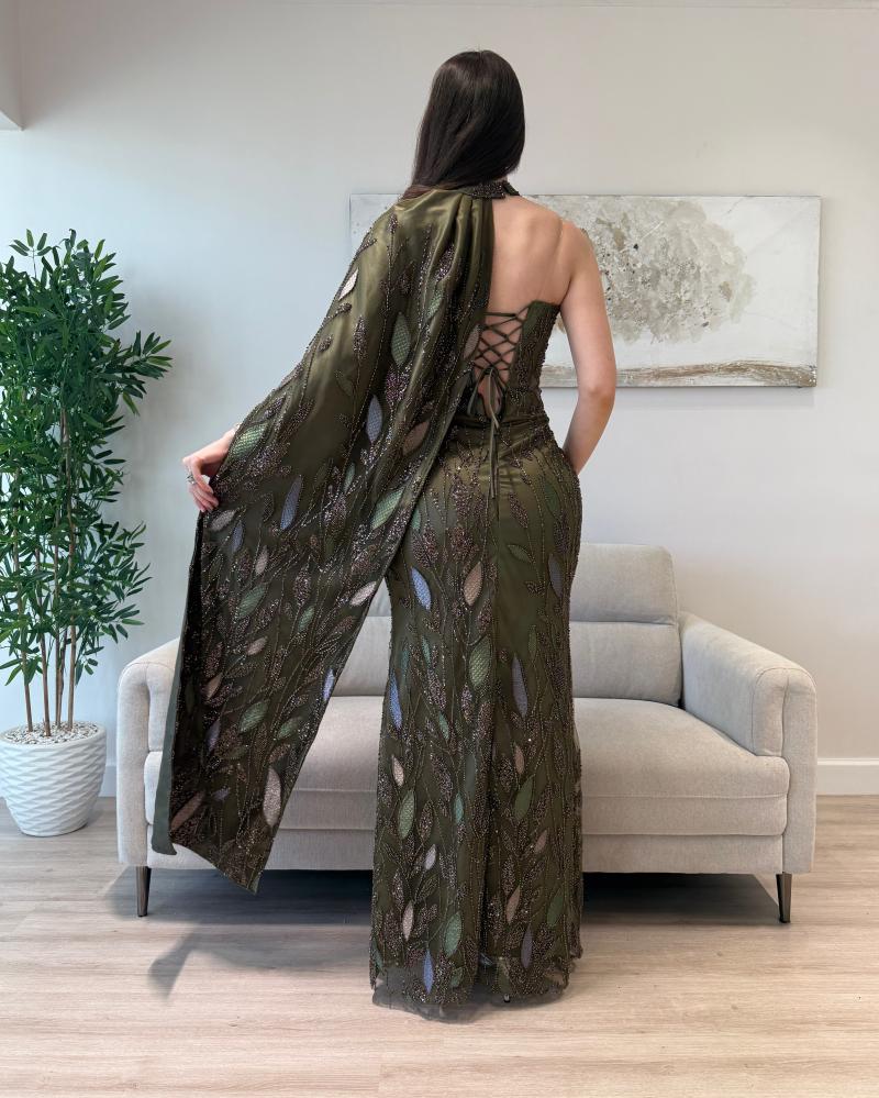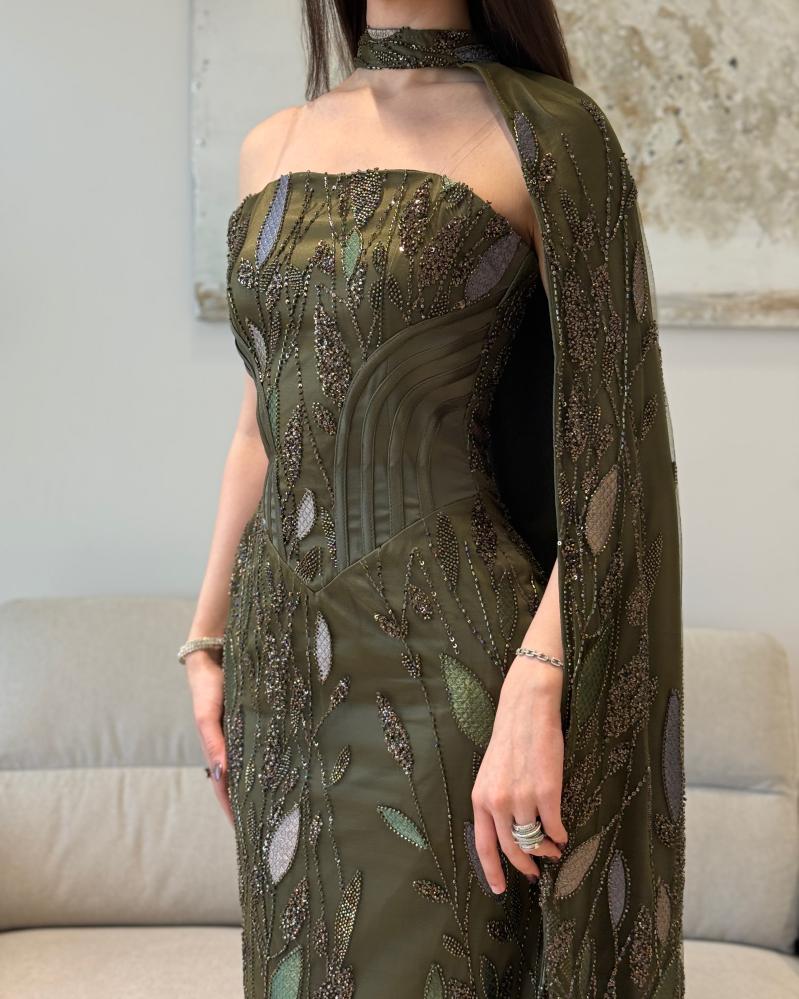 فستاني الزيتوني الفخم بتطريز لامع وخطوط يخطف الأنظار بخامته